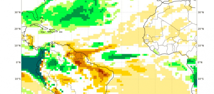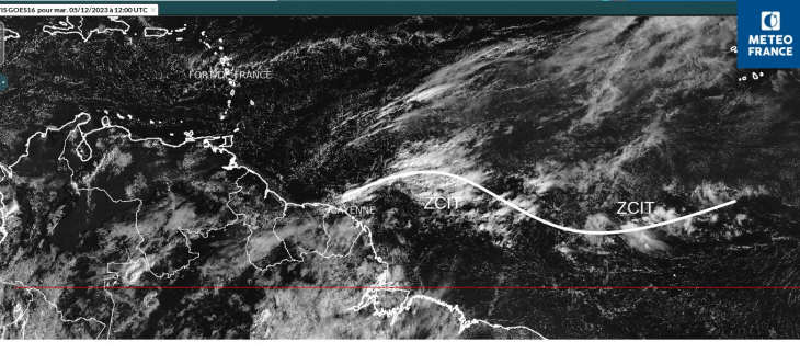 Depuis le début du mois de décembre, la Zone de Convergence Inter Tropicale s'est bien positionnée à la latitude de la Guyane mais sa très faible activité entretient un temps peu arrosé. Les averses dispersées ont tout de même fait repartir la végétation et fait remonter les débits des fleuves ( leur niveau actuel reste cependant inférieur à la normale pour cette période). A l'exception de Maripasoula qui présente une pluviométrie plus importante que la normale pour ces 20 premiers jours de décembre, tous les autres postes climatologiques montrent une pluviométrie plus basse que la normale.