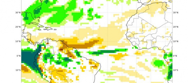Dès ce matin (lundi 8 janvier), un temps un peu plus humide s'est installé sur la Guyane. La Zone de Convergence Inter Tropicale remonte progressivement à la latitude de la Guyane. La masse d'air devient donc progressivement plus instable. Entre aujourd'hui et mercredi, un régime d'averses s'impose sur la Guyane. Un temps changeant domine avec une alternance parfois rapide entre les passages d'averses et des périodes d'accalmie. Les cumuls pluvieux les plus importants sont attendus entre mardi et mercredi. A partir de jeudi, la ZCIT amorce un mouvement vers le sud, les averses se feront moins fréquentes sur la côte et le proche intérieur mais persisteront dans le sud de la Guyane.