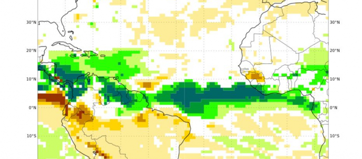 La ZCIT poursuit sa remontée vers le nord la semaine prochaine.