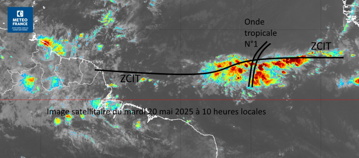 La Zone de Convergence Inter Tropicale (ZCIT, appelée aussi Equateur Météorologique d'Alizés) évolue au nord à proximité du littoral Guyanais depuis le début du mois de juin. C'est une position un peu plus au nord que ce que l'on observe habituellement. En effet, certaines années, la ZCIT reste encore calée sur la Guyane au début du mois de juin, et cela se traduit par une pluviométrie plus importante que lors de cette année.