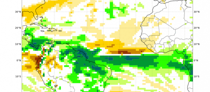 En revanche dans la nuit de mardi 20 et mercredi 21 décembre en matinée une ondulation de la ZCIT pourrait apporter des cumuls conséquents sur le nord-est Guyanais de l'Oyapock à l'Ile de Cayenne; le Nord-Ouest, de Kourou vers Mana et Saint-Laurent reste en marge et profite d'un temps un peu plus sec.