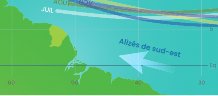 02/10/2025Le mois de septembre 2025 présente un déficit pluviométrique généralisé. C'est notamment le cas sur les savanes littorales entre Kourou et Sinnamary avec quasiment pas de pluies en un mois. À partir de samedi 4 octobre, on attend un petit changement de temps avec le retour localisé de quelques averses. Les cumuls attendus restent cependant modestes. Ce temps un peu plus arrosé devrait persister une bonne partie de la semaine prochaine (jusqu'au 10 octobre). Par ailleurs, on attend un épisode de grandes marées la semaine prochaine entre mardi 7 et mercredi 8 octobre. Ces grandes marées associées à quelques longs trains de houle de nord vont générer quelques rouleaux sur les plages et pourraient éroder le littoral dans les secteurs déjà fragilisés