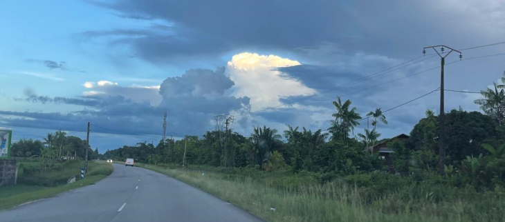 Au niveau de la température, le mois a été chaud avec une moyenne des températures maximales sur les 5 postes climatologiques principaux de 33.9°C (Matoury, Kourou CSG, Kourou plage, Saint-Georges, Saint-Laurent et Maripasoula) de 33.9°C. On se situe tout de même en-dessous des 34.4°C de septembre 2024 et assez loin des 34.9°C de septembre 2023. Les saisons sèches 2023 et 2024 avaient été particulièrement chaudes sur la Guyane.