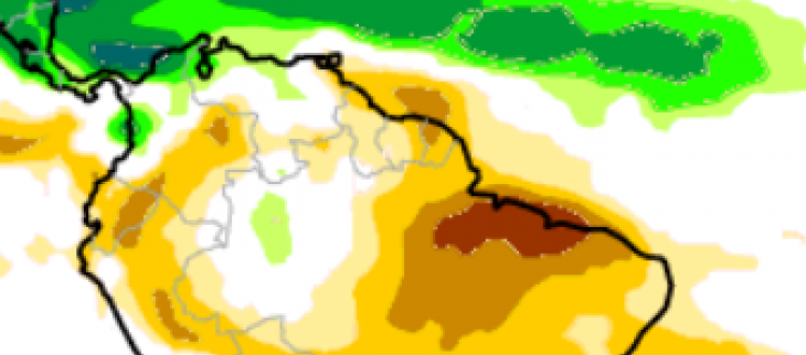 En première décade, un temps sec et ensoleillé domine sur la côte, on note tout de même 1 journée un peu plus humide : le 3, au passage de l’Onde Tropicale (OT)28, le littoral recueille 10 à 20 mm sous averses. Dans la Guyane forestière, les averses parfois orageuses sont un peu plus régulières mais restent le plus souvent dispersées, (55 mm à Trois Sauts le 1, 27 mm à Apatou le 2, 30 mm à Montsinéry le 6, 17 mm à Saül le 7, 25 mm à Cacao le 8, 16 mm à Regina le 9 et 35 mm à l’aéroport de Matoury le 10).