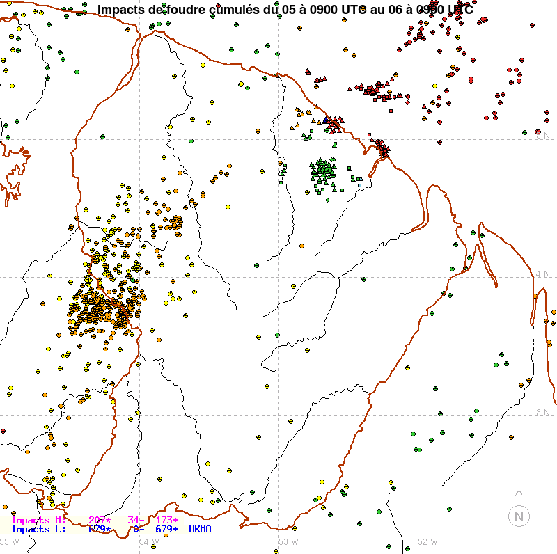 En dernière décade, le littoral profite de quelques journées plus sèches mais au passage des ondes tropicales ( les 24/25 et 28/29) ou certains jours sans brises, quelques bonnes averses arrosent encore parfois le littoral. C’est le cas à Macouria le 23 avec 16 mm, puis à Iracoubo le 24 avec 31 mm et Sinnamary le 25 avec 23 mm. On relève aussi 30 mm à Mana le 27. Dans les communes de l’intérieur, les cumuls sous orages restent encore conséquents ; on peut citer entre autres 51 mm à Apatou le 25, 30 mm à Cacao le 26 puis 49 mm à Roura le 27, 45 mm à Saül le 29 et 16 mm à Saint-Laurent le 31. Lors de cette dernière décade, la chaleur commence à se faire sentir les après-midi dans les communes du sud Guyanais avec des températures maximales souvent supérieures à 33 °C de Camopi à Maripa-Soula, le maximum relevé est de 35,5 °C à Camopi le 27.