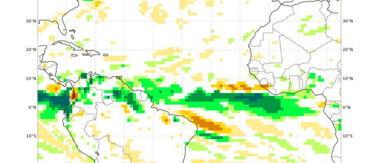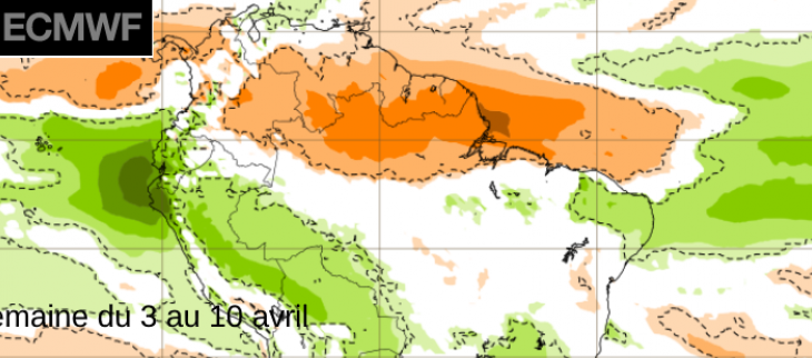 L’épisode la Niña exceptionnellement long qui expliquait la pluviométrie anormalement forte observée en Guyane depuis plus de 2 ans se termine. Une nouvelle phase du cycle ENSO (alternance irrégulière entre phases El Niño, La Niña et phases neutres) s’initie avec pour quelques mois le retour à des conditions neutres. Ce changement s’est déjà traduit pour la Guyane par le retour du petit été de mars après 2 ans d’absence. En effet du 4 au 18 mars, un temps sec a dominé sur l’ensemble de la bordure littorale . Plus globalement, tous les postes climatologiques révèlent une pluviométrie inférieure à la normale sur le mois (à l’exception du secteur s’étirant de Montsinéry à Macouria). L’Équateur Météorologique d’Alizés (EMA, autre nom de la ZCIT) a souvent évolué sur le sud de la Guyane ou encore plus au sud ( à la latitude de Belem) pendant une une grande partie de ce mois de mars.